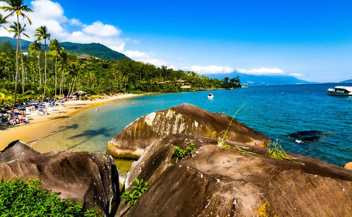 5. Ilhabela (210 km): Para as mães que amam praia, Ilhabela oferece mais de 40 praias paradisíacas com águas cristalinas, trilhas desafiadoras e uma gastronomia diversificada. Natureza exuberante e paisagens de tirar o fôlego completam o cenário.