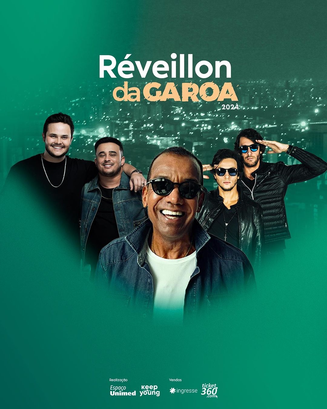 O Réveillon da Garoa promete uma virada única no Espaço Unimed, São Paulo. Com Jorge Ben Jor, Matheus & Kauan, e Jetlag no palco, a festa de nove horas oferece Open Bar Premium, incluindo Tanqueray, Red Bull, e mais.