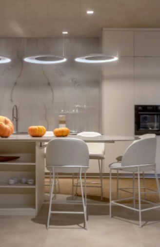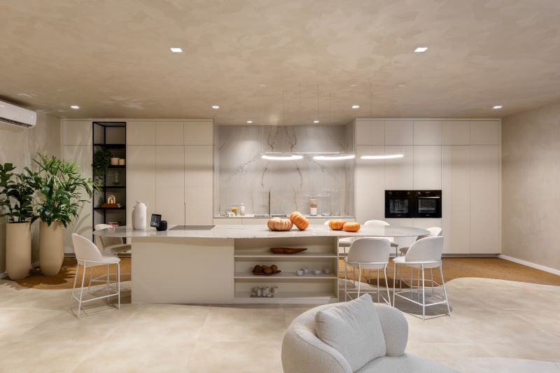 O Espaço Composição, de Daina Pontes, traz a sinergia perfeita entre música e arquitetura inclusiva. Na cozinha gourmet e na área de descompressão, o projeto minimalista mostra sensibilidade ao potencializar o convívio social, o bem-estar e a acessibilidade.