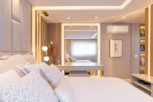 Fotos: Guilherme Jordani Vamos de inspiração para nos ajudar? Quarto de casal com o máximo de armários embutidos e iluminação