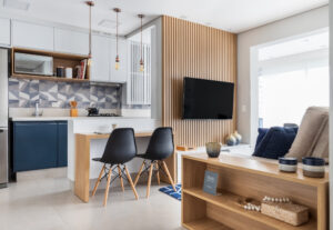 Azul vibrante e integração total: apartamento de 62m² ganha vida com projeto moderno e funcional