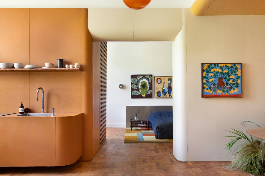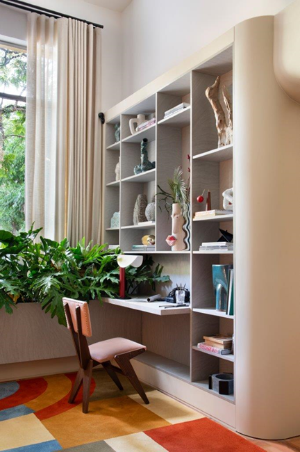 Tapetes orgânicos, mobiliário com cantos arredondados e volumes com curvas acentuadas são exemplos convencionais de como esse design pode ser aplicado nos interiores. No entanto, é crucial ter cautela para não exagerar. “As formas orgânicas são desafiadoras do ponto de vista de produção e aplicação, então é preciso ter atenção na escolha das estruturas, dos materiais e até mesmo da mão de obra para que seja possível reproduzi-las e dar o acabamento ideal”, orienta Bruna Ronconi. A chave é o equilíbrio, garantindo que as curvas adicionem sofisticação e conforto sem sobrecarregar o ambiente.