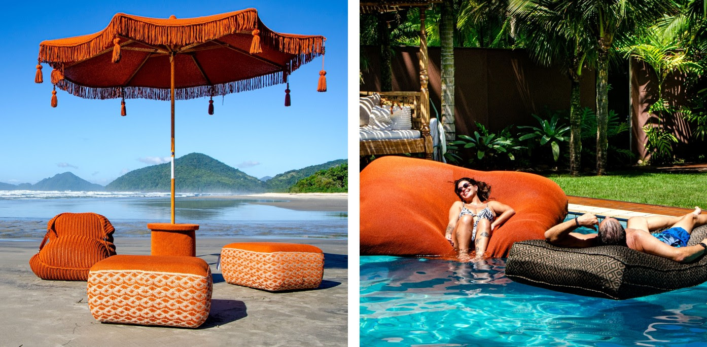 • Traço Um: Apresenta a coleção Índia, com puffs e ombrelone para os dias de calor, e a coleção Dunas, com puffs flutuantes para a piscina.