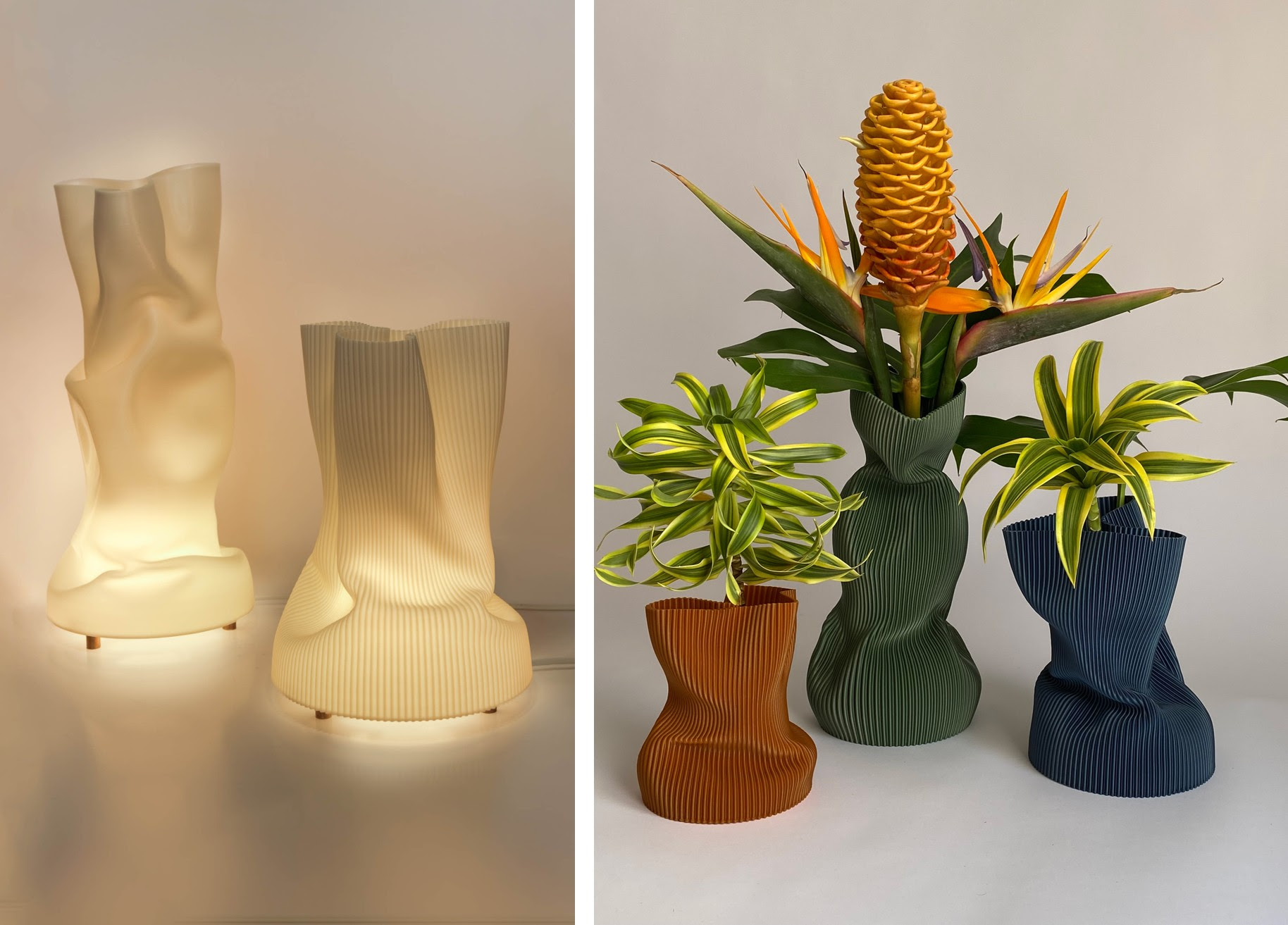 • É Pedra Ateliê: Apresenta a Coleção Amassadinhos, com luminárias e vasos impressos em 3D.