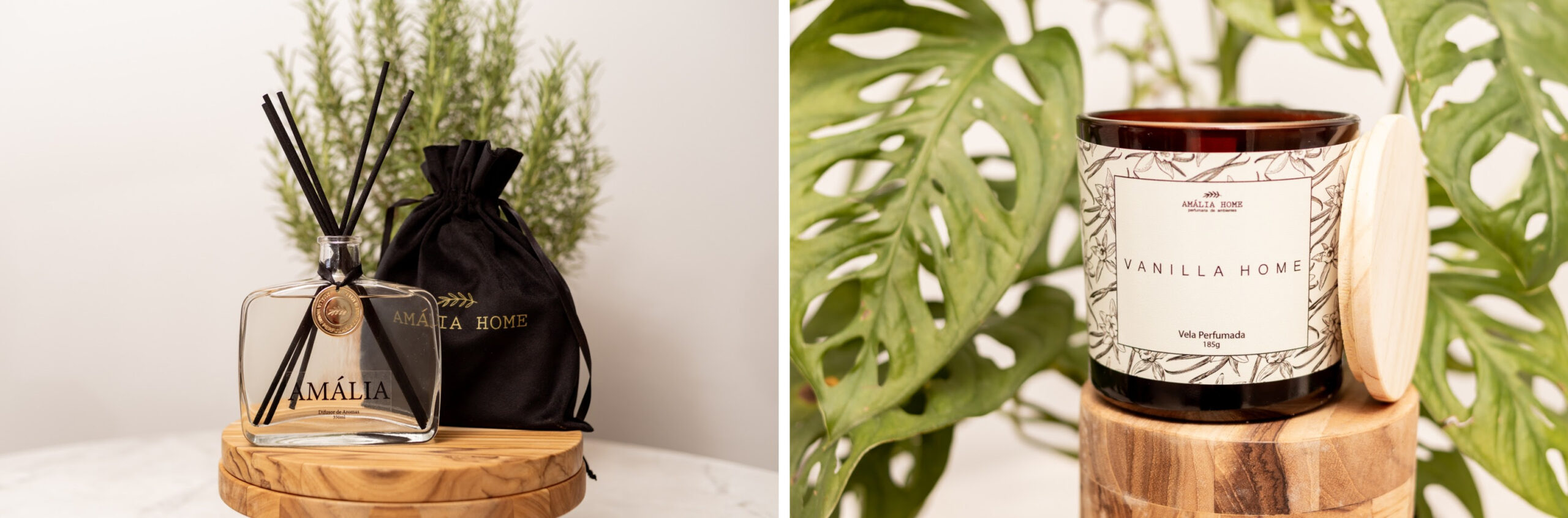 • Amália Home: Apresenta fragrâncias para o lar, como o Difusor Amália e a vela perfumada Vanilla Home.