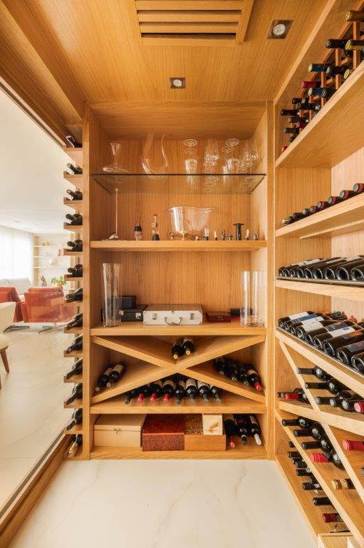 O primeiro passo é definir onde a adega será instalada. Fernanda explica que o espaço precisa ser protegido da luz solar direta e de variações bruscas de temperatura. “Pode ser um canto da sala de jantar, um espaço sob a escada, um home com bar integrado ou até uma área sem uso, desde que respeite a funcionalidade e a circulação do ambiente”, orienta.