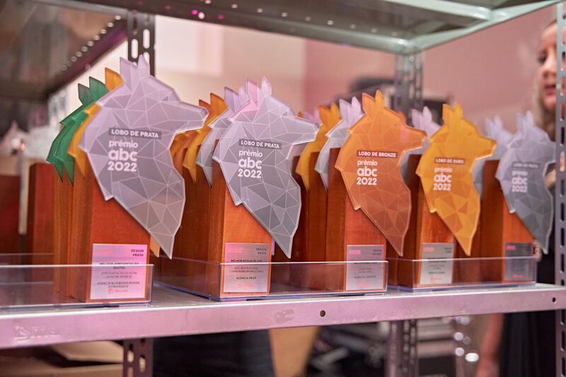 Só que sem dúvida, uma das principais surpresas foi o novo troféu, que é a real identificação do prêmio e a grande estrela de estantes, salas de reuniões e prateleiras não só das agências premiadas, mas nas empresas, shoppings, indústrias e casas de influencers também. A nova identidade do prêmio traz o lobo em destaque, um animal com características fortes, semelhantes às das pessoas que estão na comunidade ABCCOM.