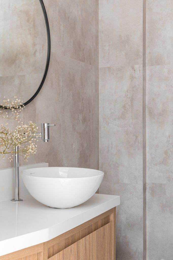 As arquitetas optaram por materiais que, além de oferecerem durabilidade e praticidade, contribuíssem para uma atmosfera acolhedora e relaxante. Texturas suaves foram escolhidas para promover a tranquilidade, enquanto superfícies fáceis de limpar e manter garantem a funcionalidade do espaço. Essa combinação cria um ambiente convidativo, onde o conforto e a praticidade se unem em perfeita harmonia.