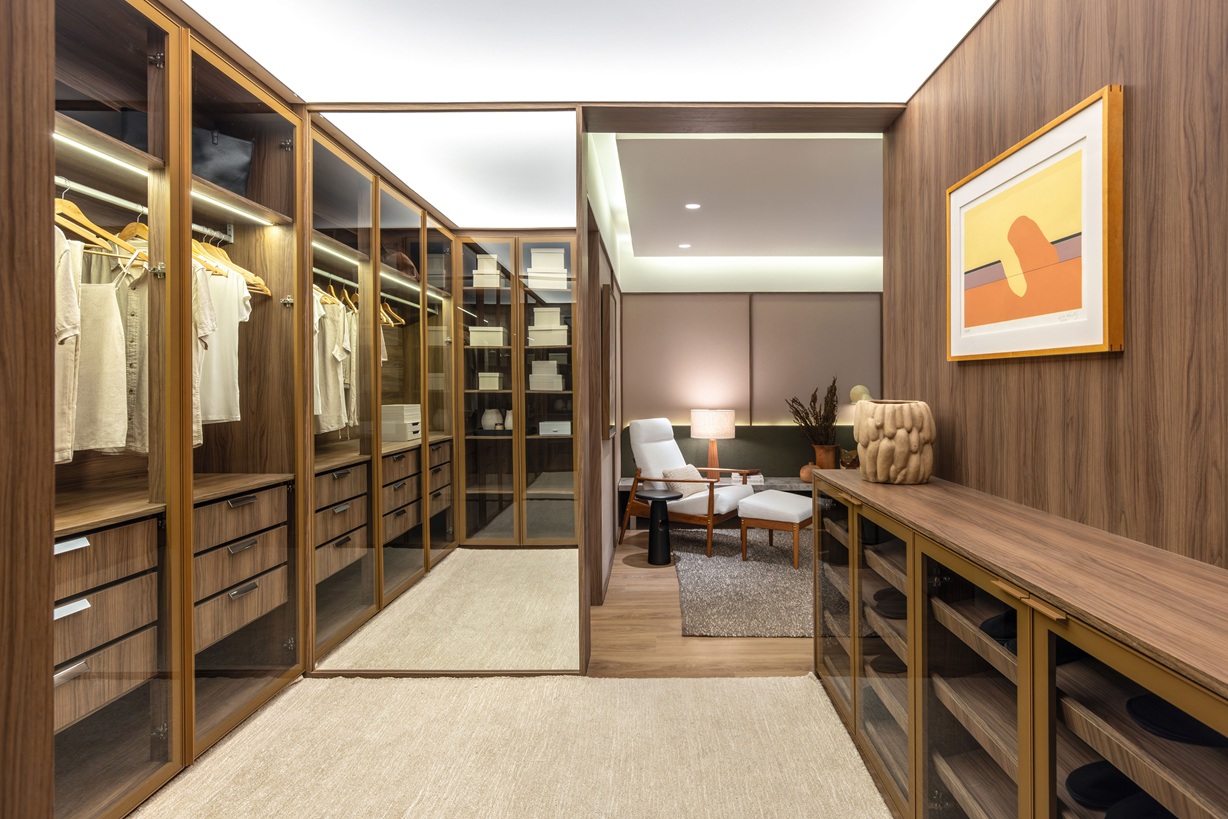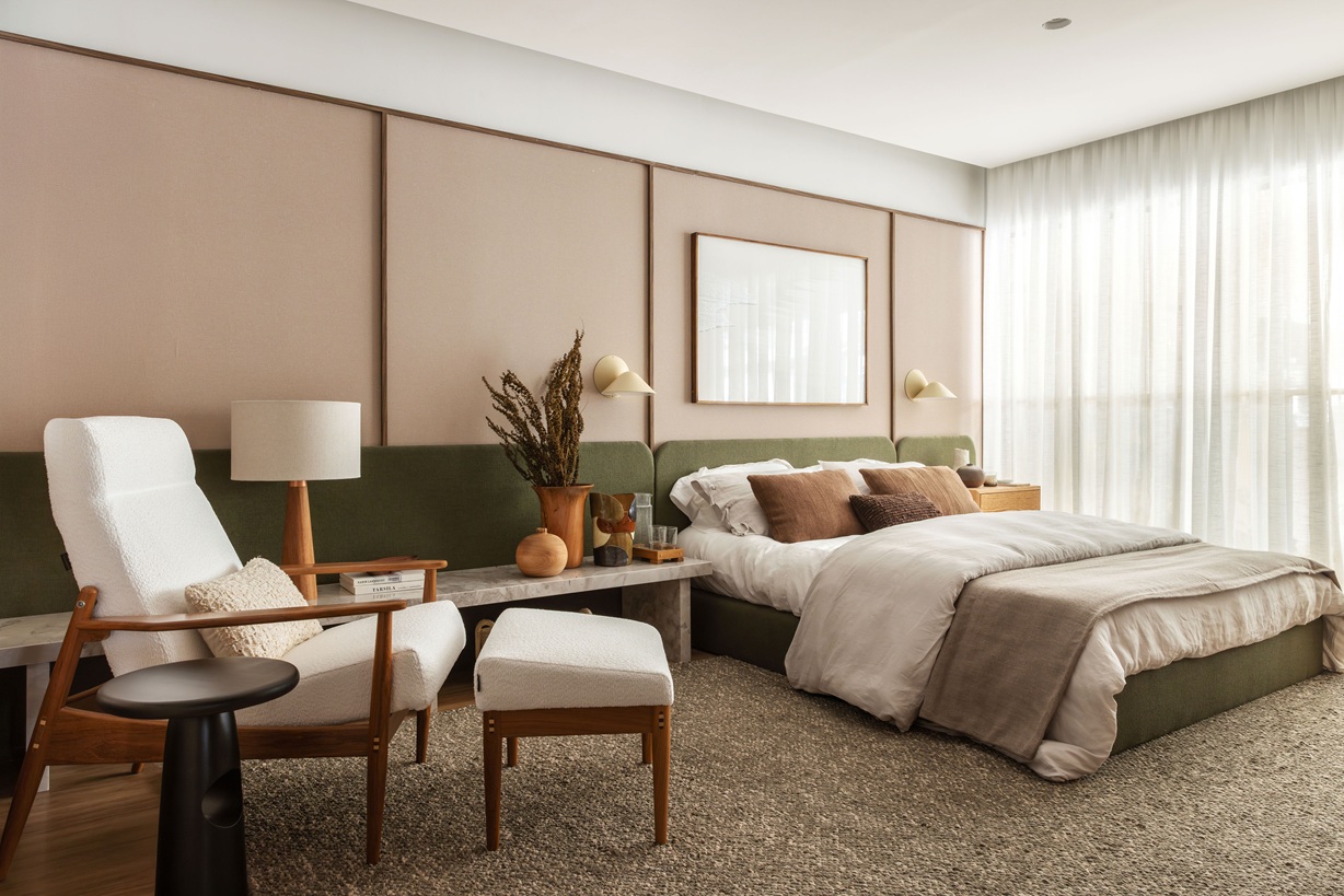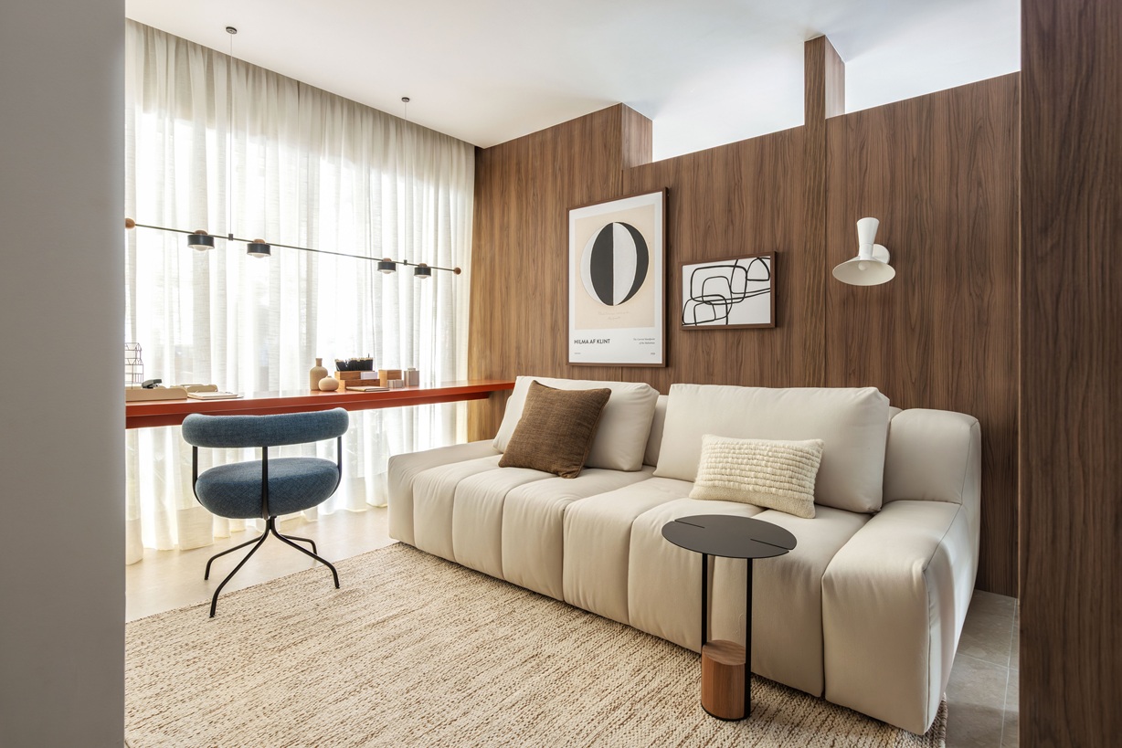 “Nossa intenção foi criar ambientes onde o morador realmente se sinta em casa, com iluminação e mobiliário pensados para transmitir aconchego e acolhimento”, afirma Claudia Albertini.