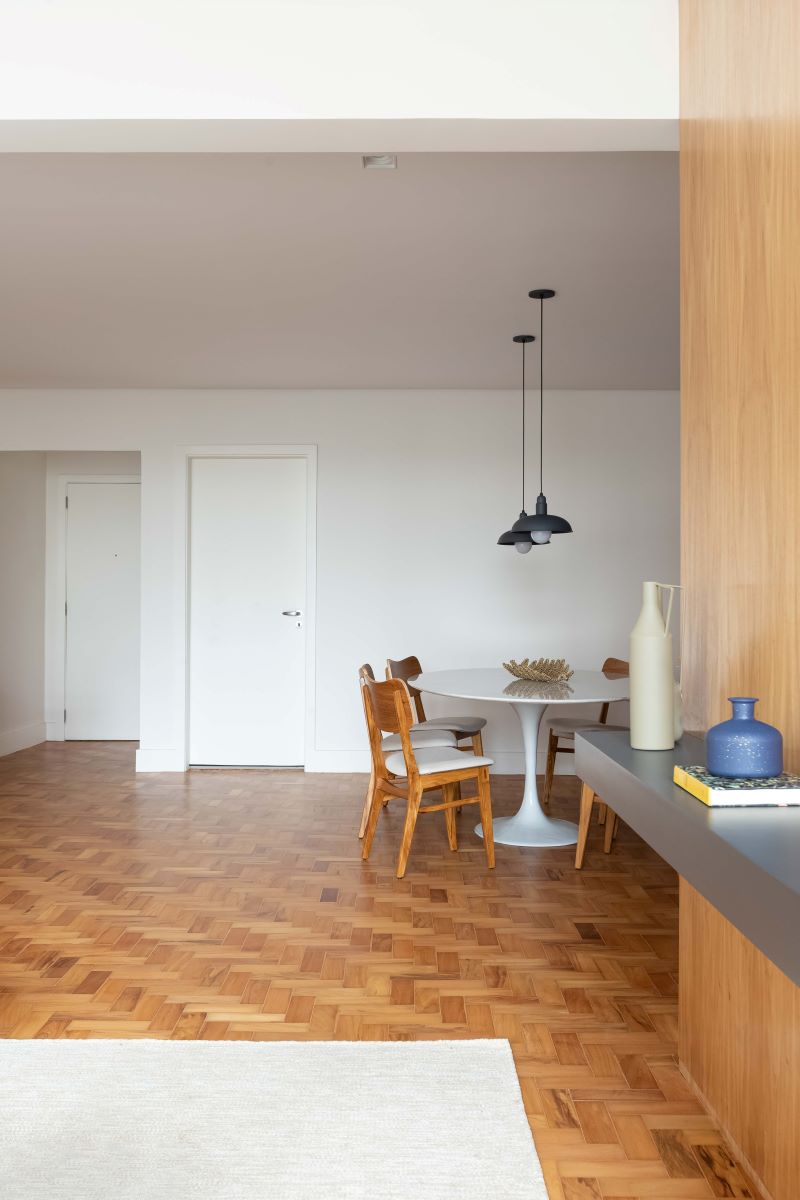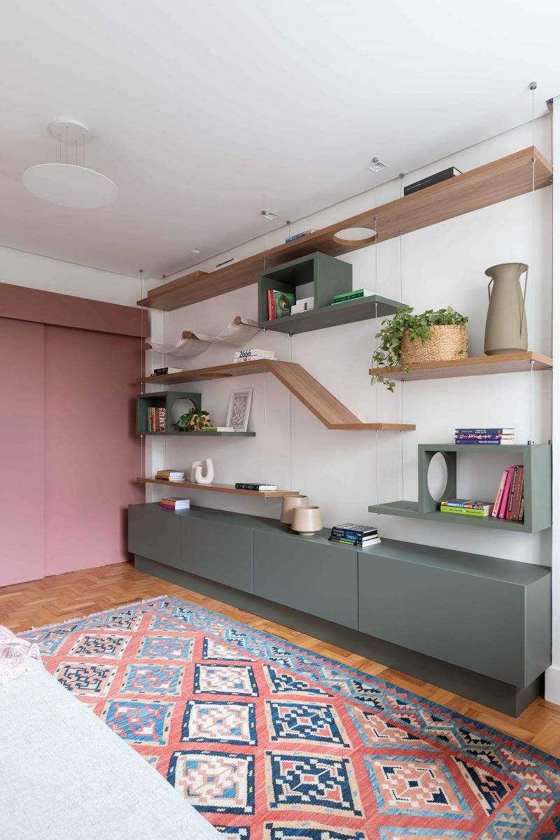 O casal buscava um projeto que valorizasse os espaços existentes, ao mesmo tempo que proporcionasse uma atmosfera contemporânea e aconchegante. Os gatos eram uma parte importante da equação, e o Estúdio Maré garantiu que os ambientes fossem projetados tendo em mente esses membros peludos da família.