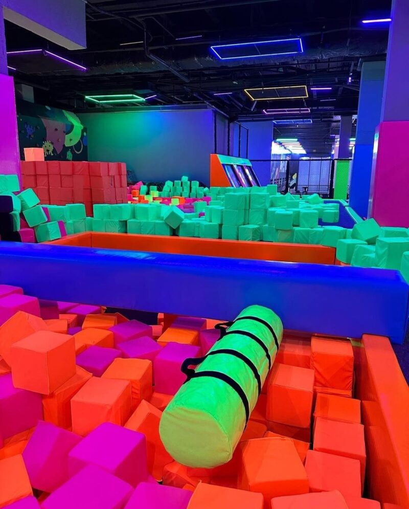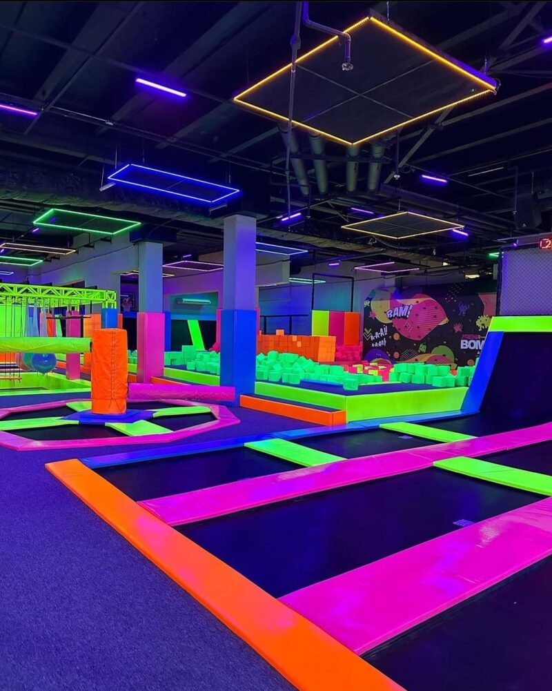 A área total de mais de 1300 m² e uma das maiores áreas de cama elástica de São Paulo, com mais de 650 m². O funcionamento do espaço será diário, das 14h às 23h.