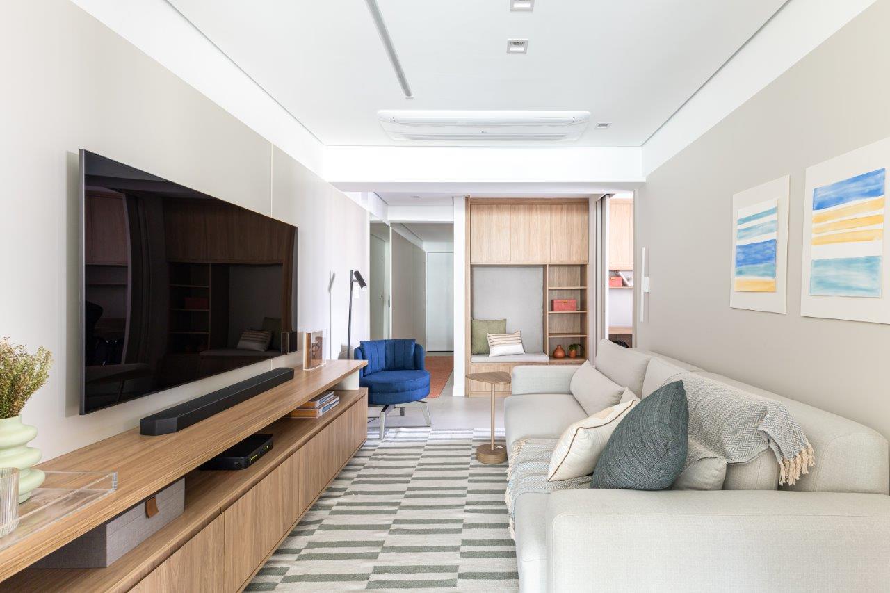 Um apartamento de 72m² no Boqueirão, em Praia Grande, SP, passou por uma transformação completa pelas mãos da arquiteta Virgínia Caldas, do Estúdio Bena. O projeto, encomendado por um cliente recém-divorciado, tinha como objetivo criar um espaço funcional, aconchegante e com design moderno, marcando um novo começo para o morador.
