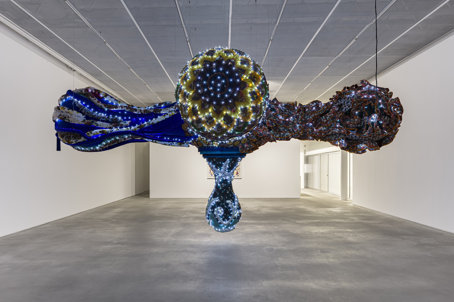 Na sala principal, a grandiosa Valkyrie Léonie (3,51m x 7,29m x 7,52m) não é apenas uma escultura suspensa; é uma instalação arquitetônica que redefine o ambiente. Parte da icônica série das Valquírias, essa obra é um exemplo notável de como uma única peça de arte pode ser o ponto focal de um cômodo. Seus braços tentaculares e vibrantes envolvem o espaço, criando uma experiência imersiva.