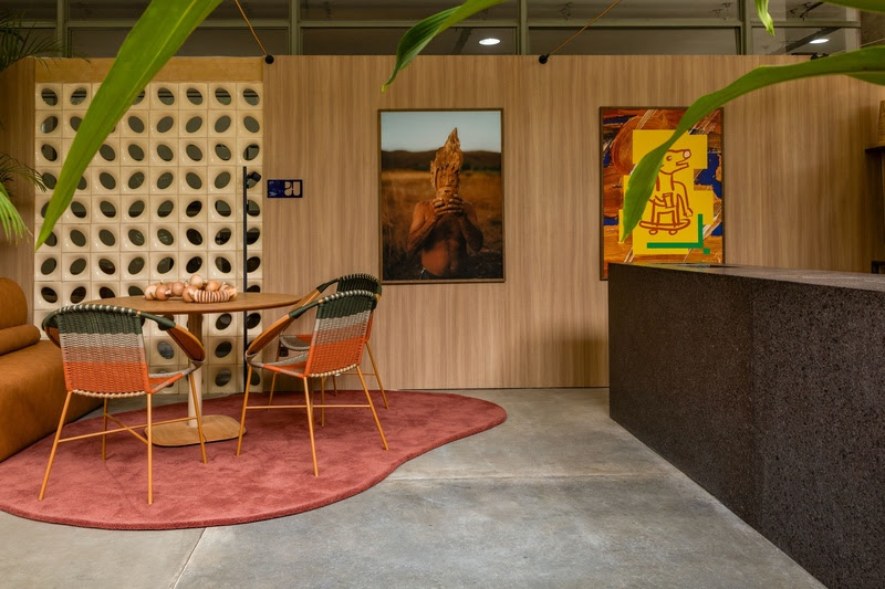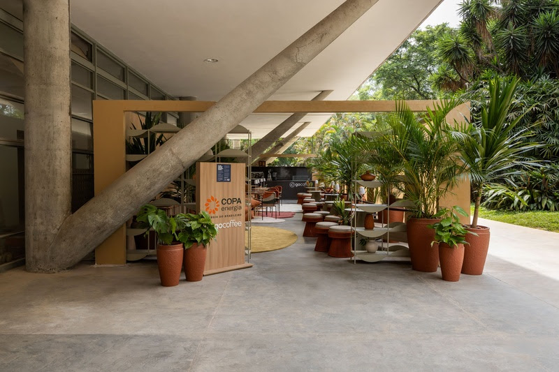 Mais do que um ponto de apoio, o café foi concebido como extensão conceitual da Bienal. Integrado ao percurso expositivo, o ambiente convida o público à pausa, ao encontro e à permanência. A proposta, segundo Henning, é explorar a arquitetura a partir do uso e da experiência, transformando o espaço em palco para interações espontâneas.