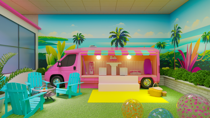 Alucinados (as) pelas tendências Barbiecore poderão vestir looks temáticos e visitar um armário cheio de looks, quarto, academia, salas, banheiro, cozinhas e toda aquela área externa digna das viagens da boneca de motorhome com o seu querido Ken (imagine o Ryan Gosling na hora da foto, ator que interpretará o namorado da Barbie no filme).