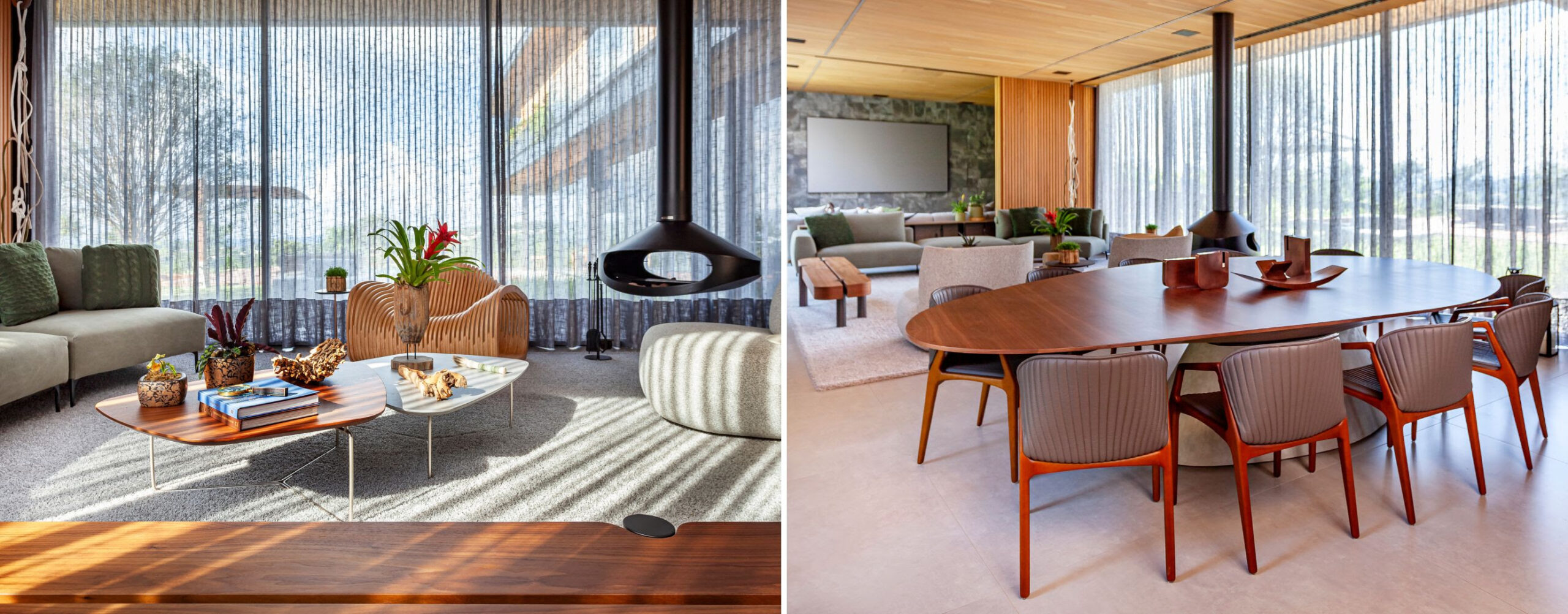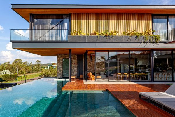 Localizada em Itu, interior de São Paulo, esta residência de 700 m² transforma o conceito de viver bem ao integrar sofisticação, acolhimento e natureza. O projeto de interiores explora madeira, marcenaria sob medida e soluções de iluminação para criar espaços fluidos, funcionais e cheios de personalidade, traduzindo a contemporaneidade da estrutura metálica, grandes esquadrias de vidro e materiais naturais. “O resultado manteve o caráter rústico e acrescentou sofisticação”, destaca a arquiteta Cristiane Schiavoni.