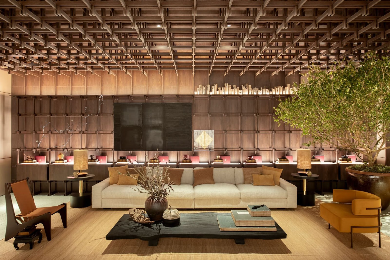 Com 175 m² distribuídos entre living, sala de chá, dormitório e sala de banho, o ambiente, desenvolvido para a Duratex, parte de referências orientais para traduzir um abrigo contemporâneo. Mais do que estética, a proposta é experiencial e simbólica, evidenciando como o design pode ser ferramenta de acolhimento e introspecção.