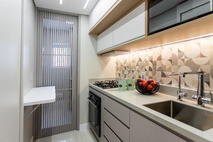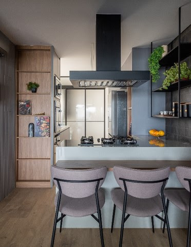 Segundo Mari Milani, a instalação de divisórias é viável tanto em plantas generosas quanto em cozinhas pequenas. A escolha do tipo de fechamento deve considerar fatores como ventilação cruzada e entrada de luz natural. “Caso esses atributos estejam presentes apenas na área de serviço, é fundamental pensar em alternativas que também beneficiem a cozinha”, orienta.