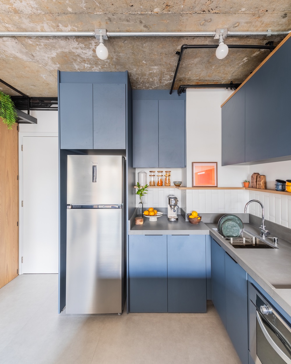 2. Industrial: tijolos à vista, concreto aparente e metais escuros para um ambiente urbano e despojado. Ideal para quem tem um estilo autêntico e gosta de ousar na decoração.
