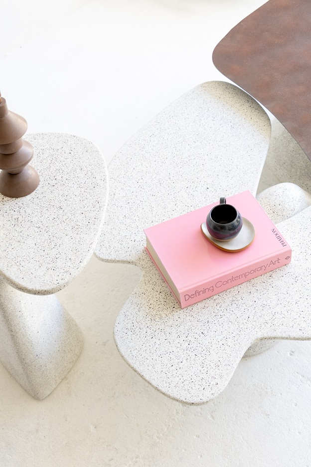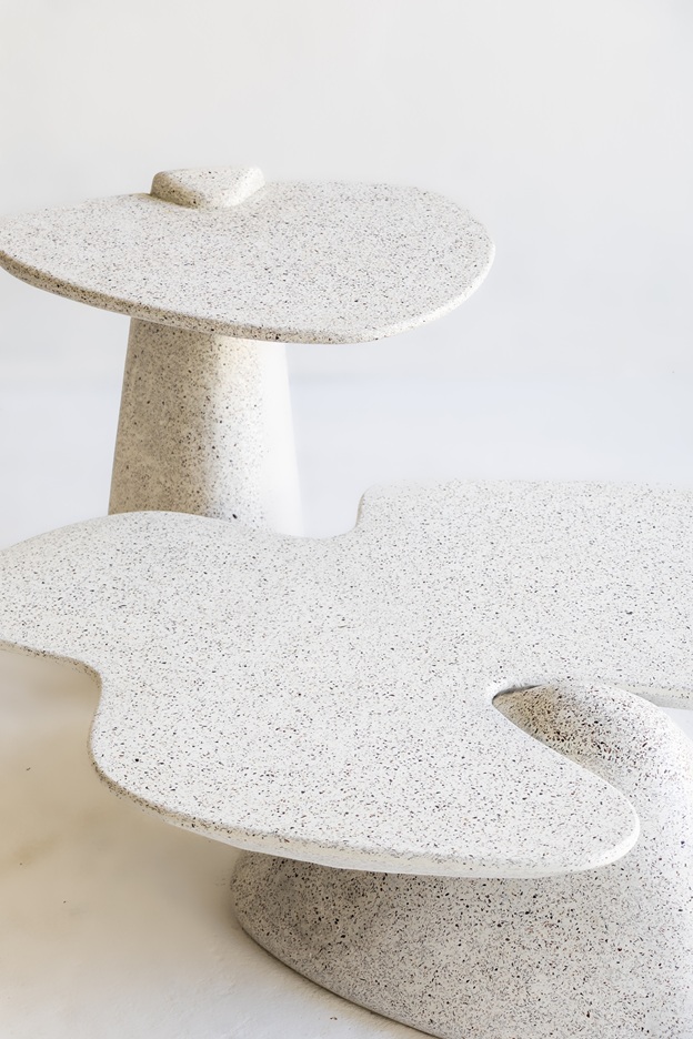 A execução técnica das peças revela a expertise da Traço na manipulação do concreto. Por meio de modelagens e estruturas específicas, o projeto viabiliza formas complexas sem abrir mão da leveza visual. Esse equilíbrio evidencia uma característica marcante do design brasileiro contemporâneo: a convergência entre repertório cultural, inovação industrial e experimentação material.