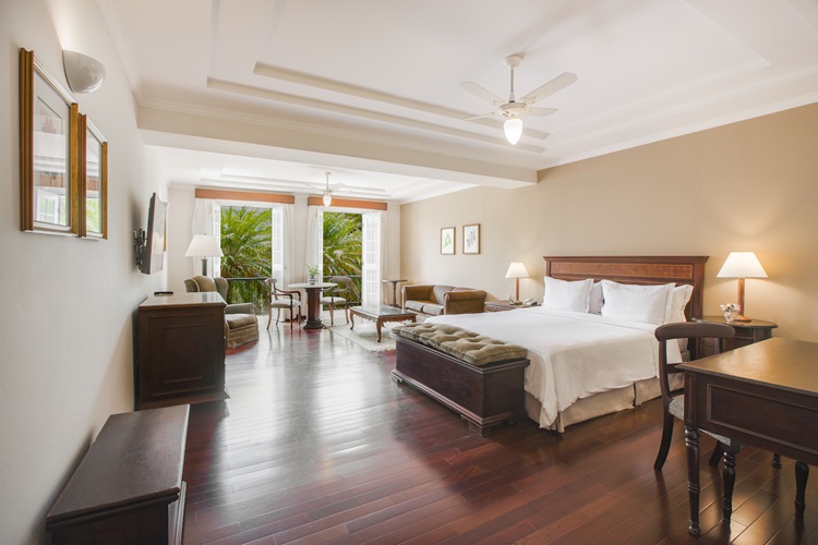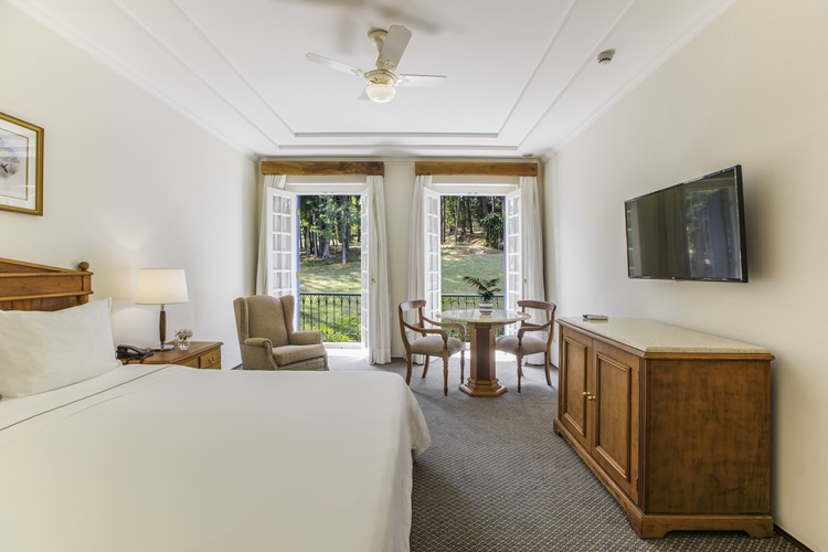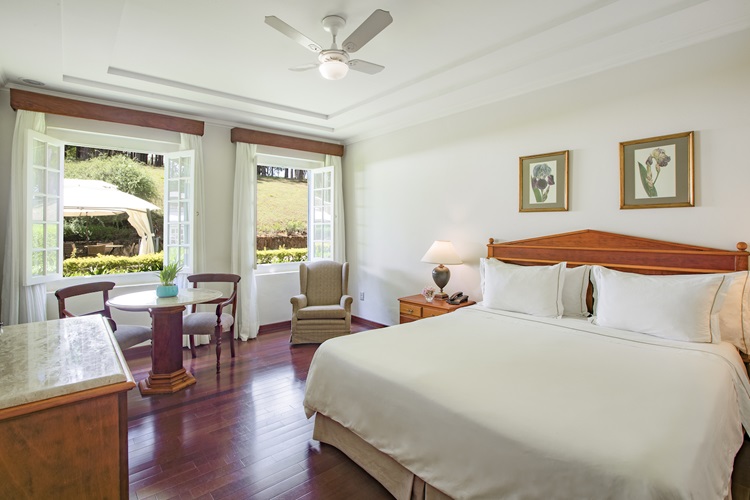O empreendimento oferece 98 apartamentos amplos, que combinam a elegância do estilo colonial com infraestrutura moderna, como ar-condicionado, frigobar, TV a cabo e Wi-Fi. Divididos nas categorias Luxo, Luxo Superior e Suíte Master, os quartos contam com banheiros de mármore, roupas de cama de algodão 330 fios e amenities da marca L’Occitane. A hospedagem inclui pensão completa (exceto bebidas alcoólicas e não alcoólicas).