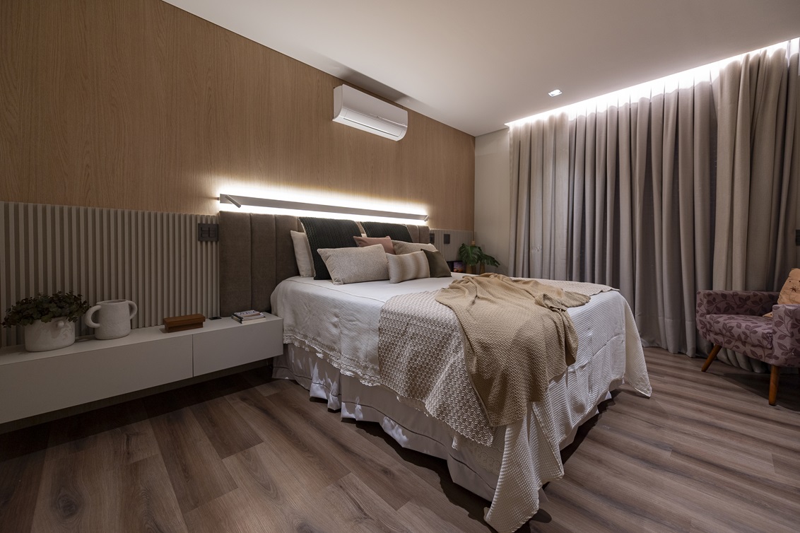 • Fitas de LED na marcenaria para um toque funcional e decorativo.