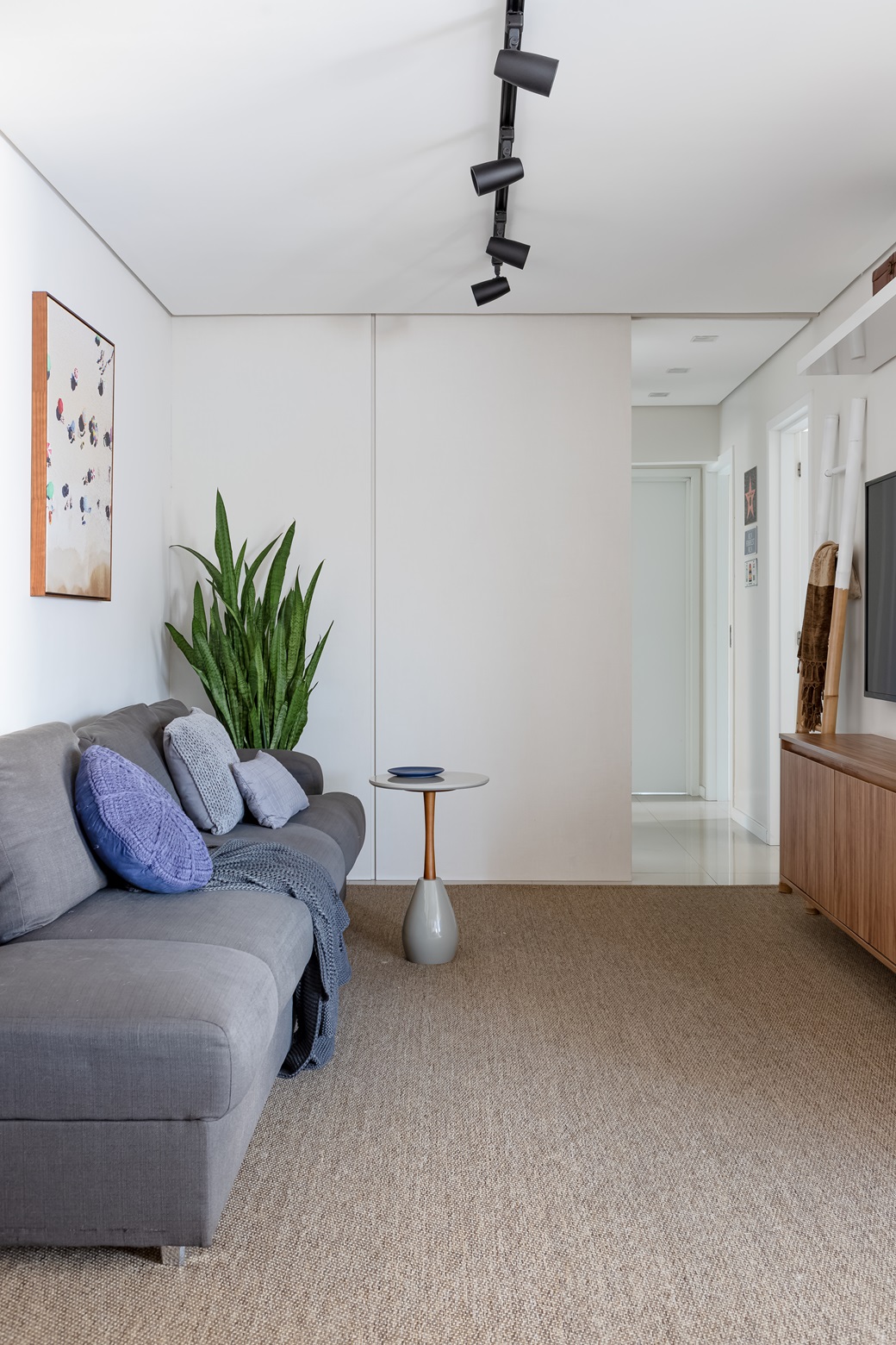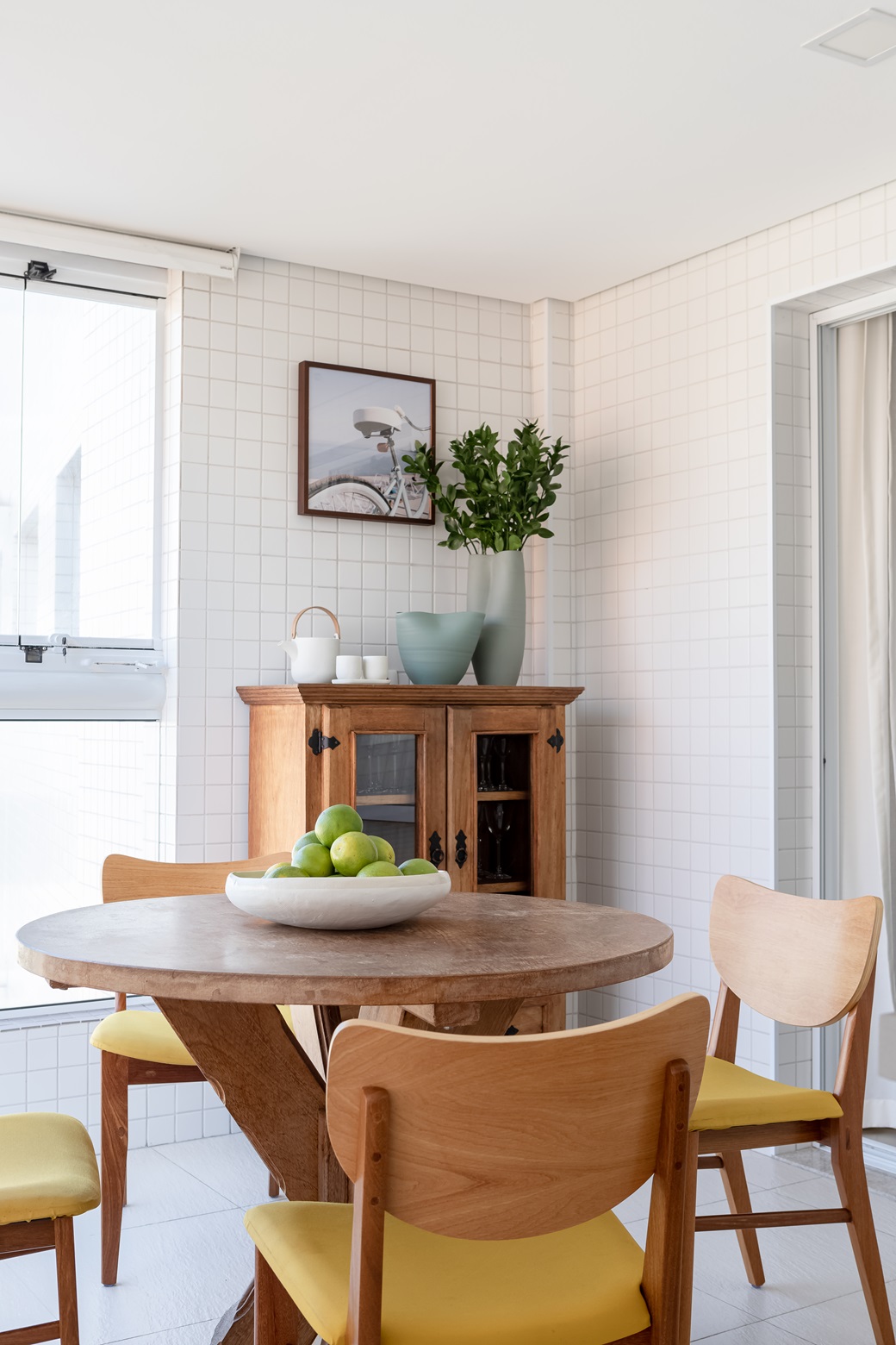 A perda do esposo motivou a busca por um lar que fosse mais do que um simples apartamento. A arquiteta soube interpretar essa necessidade, criando ambientes que celebram a vida e as memórias, ao mesmo tempo em que oferecem praticidade e funcionalidade para o dia a dia.