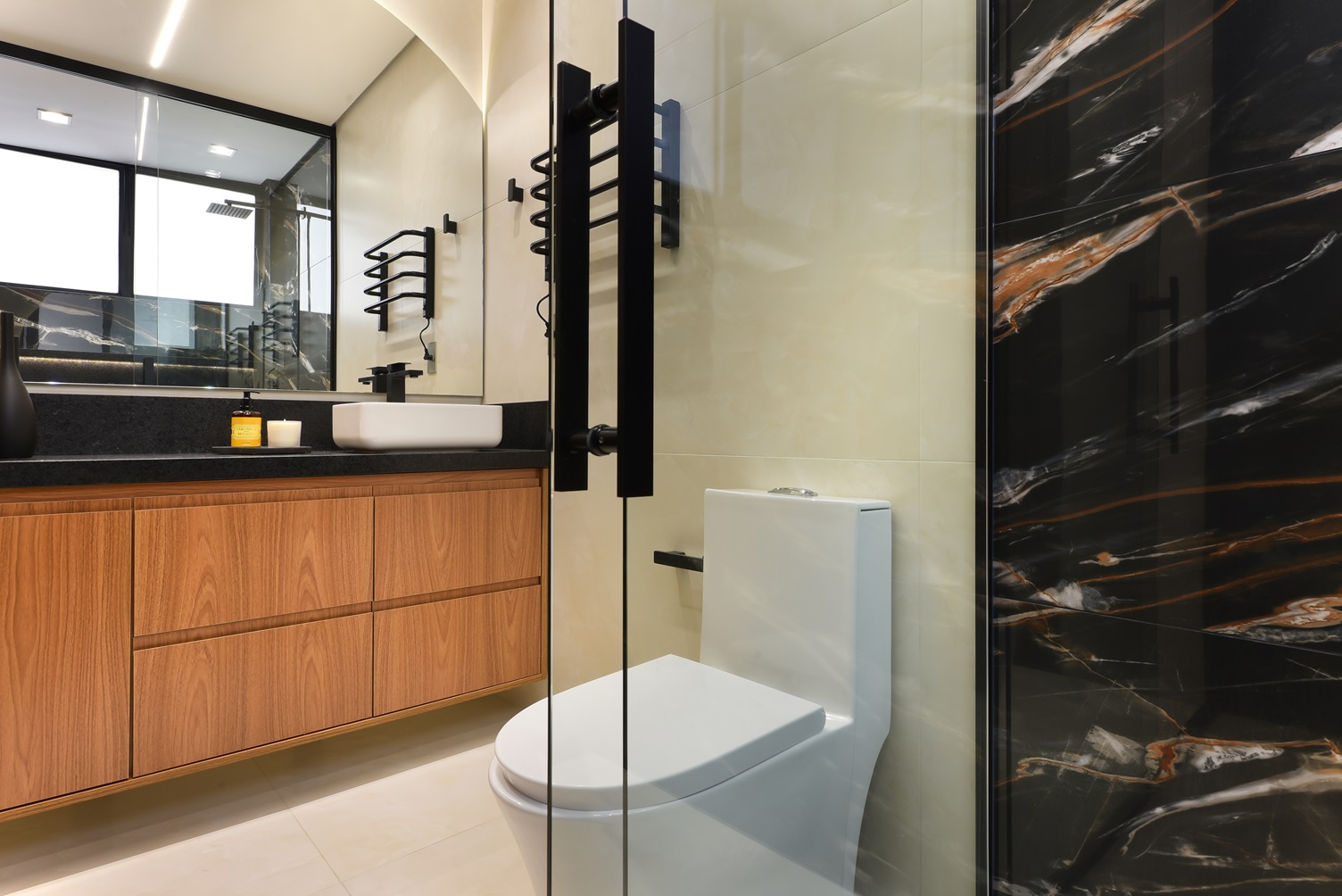 O projeto foi concebido com foco nas necessidades e identidade do casal, criando um ambiente que combina funcionalidade, modernidade e estilo. As divisórias foram removidas para ampliar o espaço, e materiais cuidadosamente selecionados, como porcelanatos marmorizados e revestimentos de madeira restaurados, contribuem para a estética acolhedora e contemporânea.