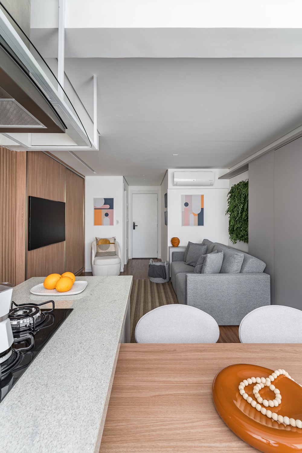 Um apartamento de 45m² se transforma em um oásis de funcionalidade e estilo com a expertise da Inovando Arquitetura.
