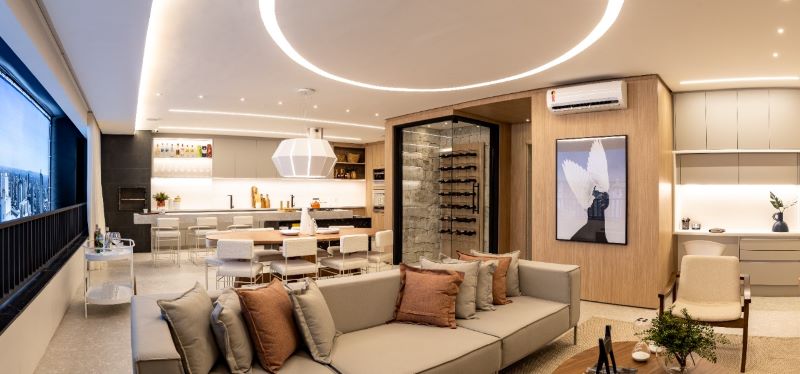 Visando contribuir com a economia de energia e durabilidade do produto, Eduardo revela que todas as luminárias do projeto são em LED. “Todas as luminárias do apartamento são abastecidas com tecnologia de LED. Atualmente temos uma gama muito grande de opções que, além de serem muito interessantes, trazem vários benefícios”.