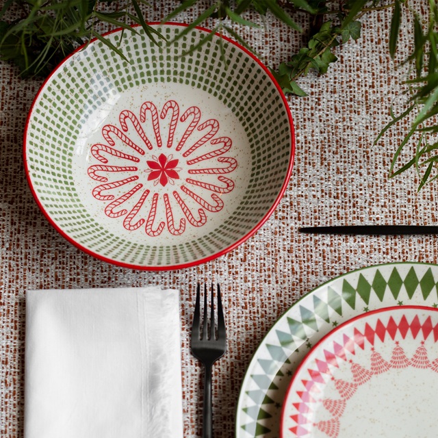 Com uma abordagem contemporânea e lúdica, Malabarismo Natalino traz estamparia vibrante, figuras festivas e composições que equilibram alegria e sofisticação. A linha traduz o movimento, a leveza e a energia típicos das celebrações, funcionando como convite visual para mesas mais descontraídas, afetivas e cheias de personalidade. É a escolha ideal para anfitriões que desejam uma estética atual, com cores que iluminam a experiência de reunir pessoas queridas.