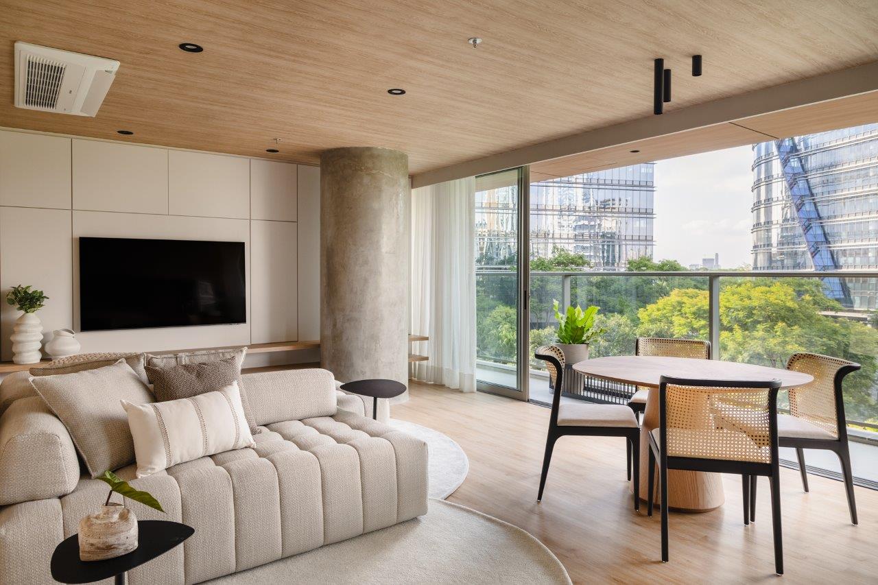 Com estética minimalista e atmosfera calorosa, a arquiteta Flávia Prata transformou um apartamento de 102m² no W Residences Vila Olímpia, em São Paulo, em um refúgio urbano que equilibra funcionalidade, bem-estar e sofisticação. O imóvel, inicialmente adquirido como investimento e entregue no contrapiso, fazia parte do complexo que integra hotel, residências, centro de convenções e restaurante. Contudo, o cliente, residente em Botucatu, decidiu convertê-lo em segunda moradia para os momentos em família na capital paulista.
