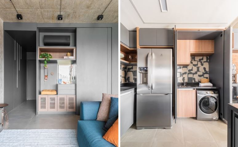 A pintura é o ponto de partida mais acessível para adotar o estilo. Uma parede em tom mais fechado pode servir de base para uma paleta em degradê, especialmente em ambientes de convivência como salas e livings. Já a marcenaria planejada reforça a sensação de continuidade, criando ambientes coesos e sofisticados. Em cozinhas, por exemplo, armários e eletrodomésticos no mesmo espectro cromático resultam em composições elegantes e modernas.