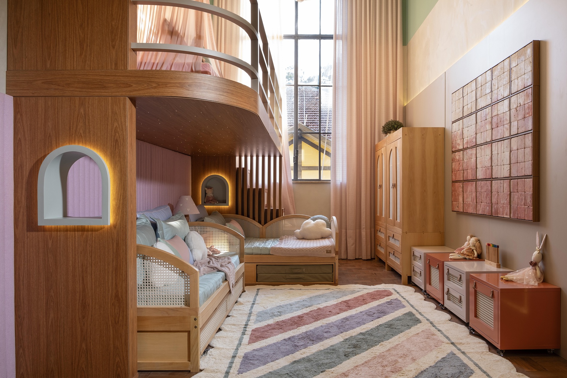 Com 25 metros quadrados e desenvolvido para duas irmãs, o quarto infantil de Marta Martins é um exemplo de como a beleza, a função, a emoção e a sustentabilidade podem se unir em um único espaço. “A infância é o primeiro solo fértil onde os sonhos são plantados. Quis traduzir essa metáfora em um ambiente que acolhe, inspira e permanece na memória afetiva das crianças por toda a vida”, conta a arquiteta.