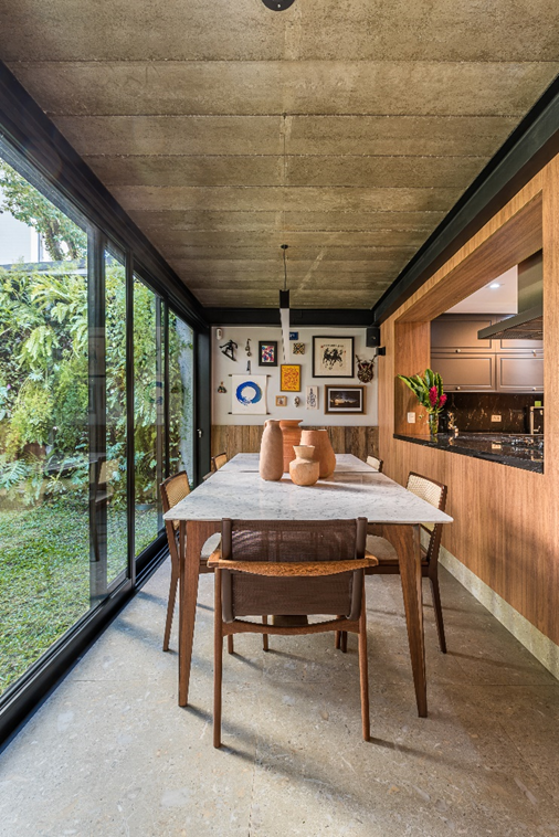“A Casa de Vila é um local onde minha família consegue aproveitar diferentes situações, desde a preparação de refeições até reuniões na sala de jantar, e até mesmo relaxar no balanço construído por meu pai ao seu neto no jardim”, ressalta a arquiteta, destacando como o espaço foi projetado para proporcionar momentos únicos para os moradores.