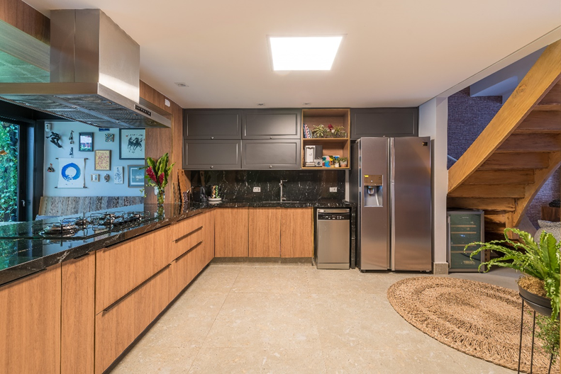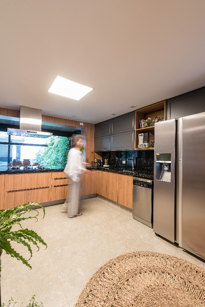 Com o intuito de proporcionar um ambiente mais aconchegante para receber amigos e familiares, a arquiteta expandiu a cozinha de sua casa. O cômodo foi totalmente renovado, seguindo o conceito aberto e recheado de utensílios para bancarem o mestre cuca com estilo.