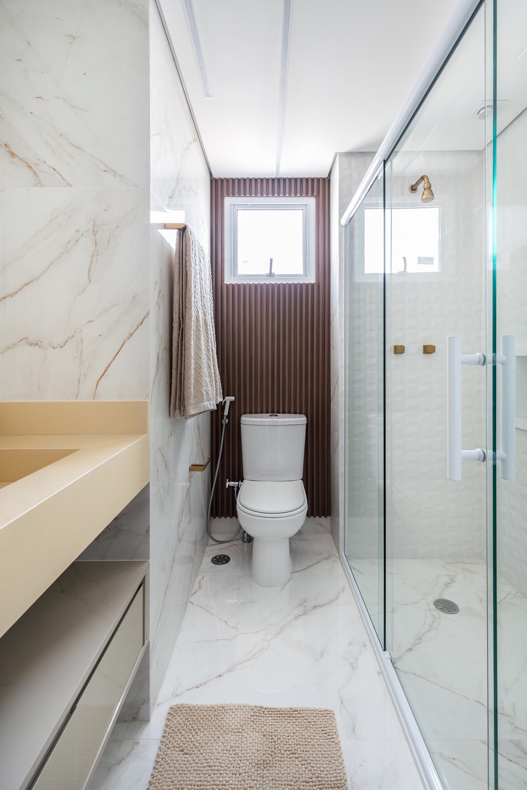 A RMV Interiores foi além das expectativas dos clientes, oferecendo soluções criativas para atender aos seus desejos. A inclusão de um banco interno na caixa do banho master foi uma alternativa elegante e funcional à banheira de chão, que não poderia ser instalada devido às regras do condomínio.