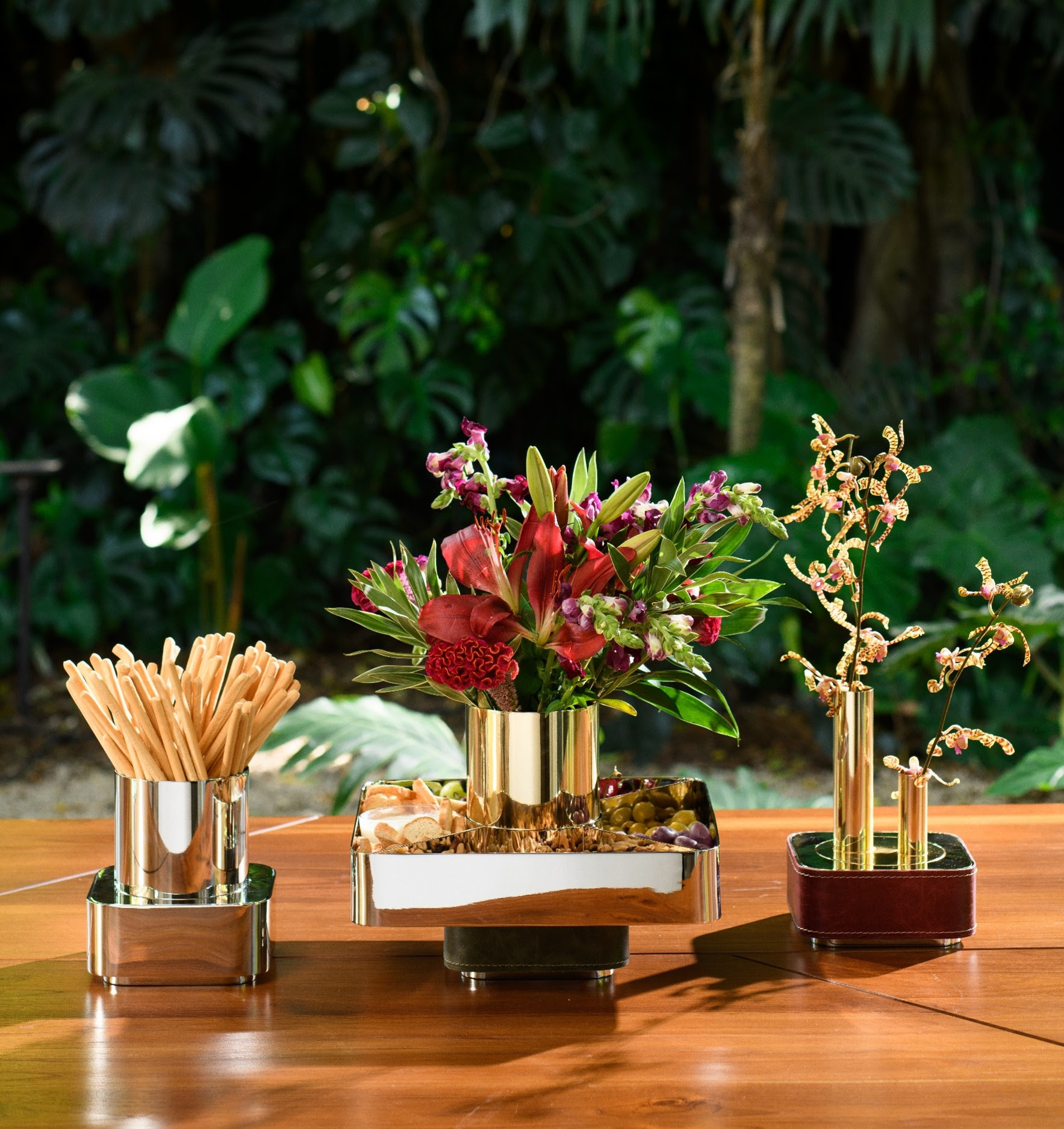 - St. James: Com a linha Fragmentos, a St. James oferece versatilidade e personalização. As bases em metal permitem criar diferentes composições com as partes móveis em prataria.