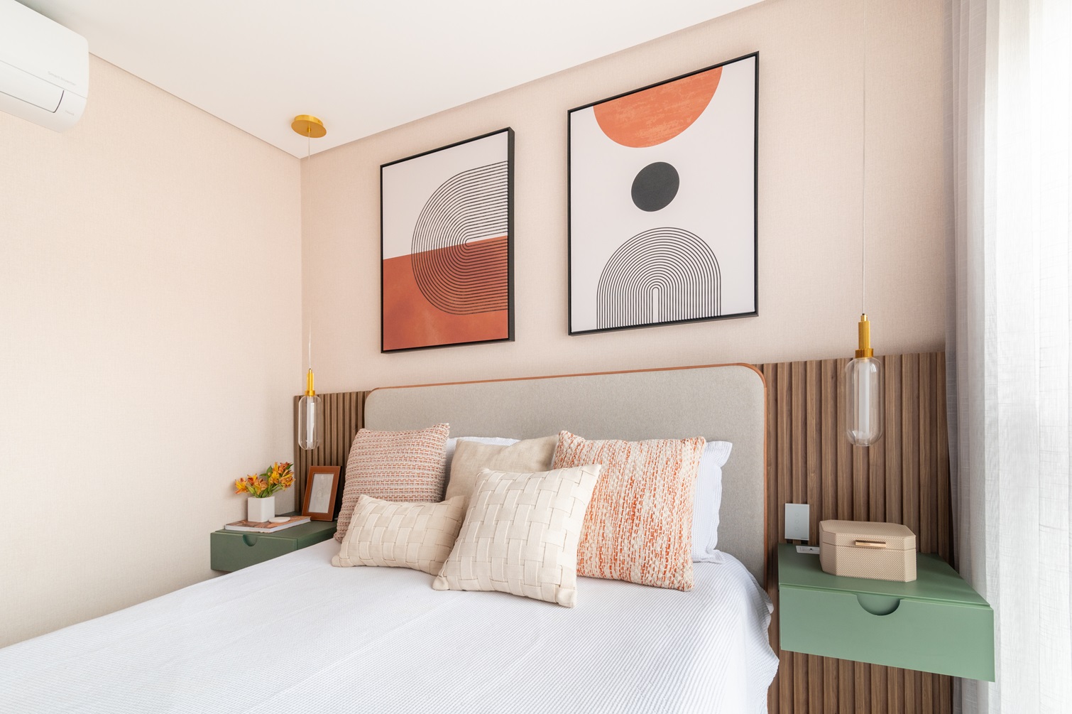 Essa abordagem personalizada transforma os dormitórios em refúgios individuais, que equilibram conforto, organização e estética em cada detalhe.