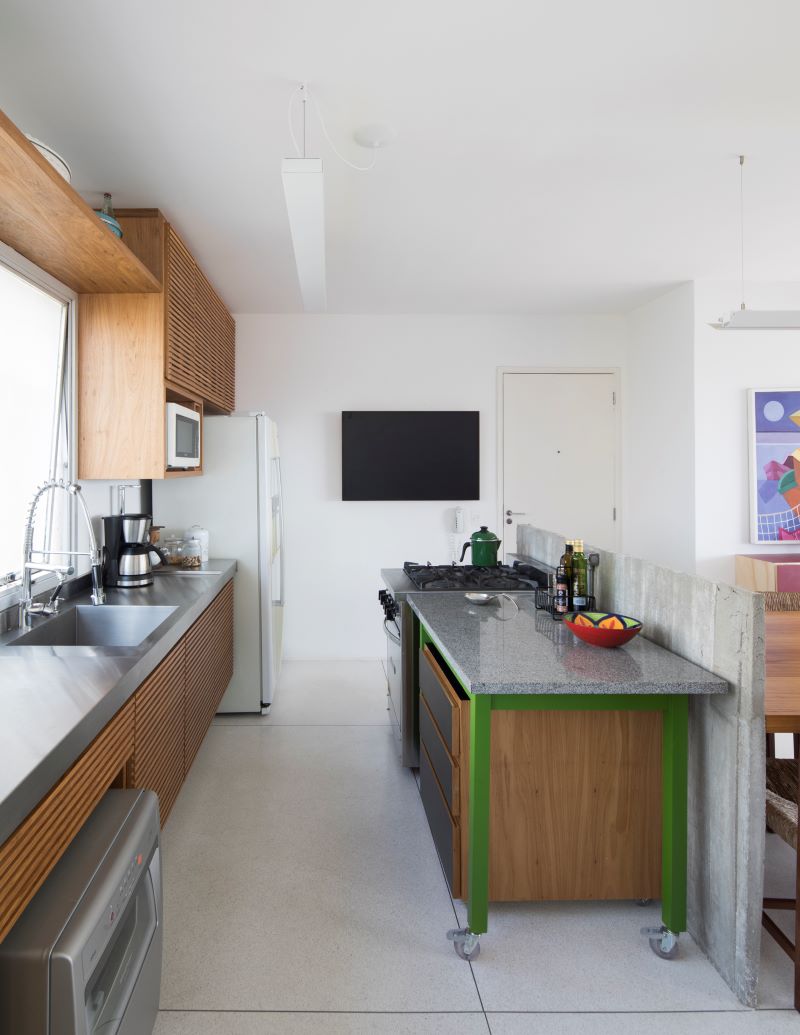No bairro da Vila Madalena, um apartamento de 140 m², original dos anos 1979, foi transformado após reforma realizada pelo escritório Meridional Arquitetura, comandado pelo arquiteto Luiz Sobral Fernandes. A intervenção partiu da valorização dos aspectos originais do imóvel, introduzindo novos elementos para o melhor aproveitamento da moradora – uma professora universitária.