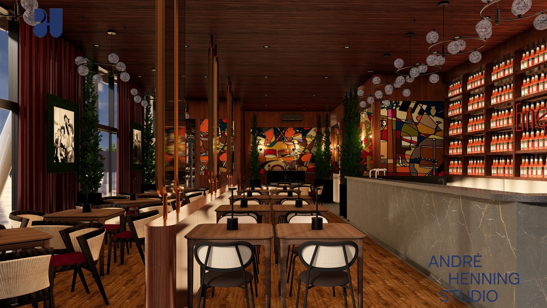 André Henning, um dos principais nomes da “arquitetura de negócios” no Brasil, foi o responsável por dar vida e personalidade a cinco dos seis restaurantes da Rua da Música. Sua expertise em unir arquitetura, cenografia, funcionalidade e narrativa resultou em ambientes que transcendem a simples decoração, transformando-se em espaços imersivos onde cada detalhe é pensado para potencializar a experiência do visitante. “Cada casa tem uma personalidade e uma trilha sonora”, explica o arquiteto, que também assinou a ambientação externa da Rua da Música, incluindo o projeto de iluminação e o mobiliário.
