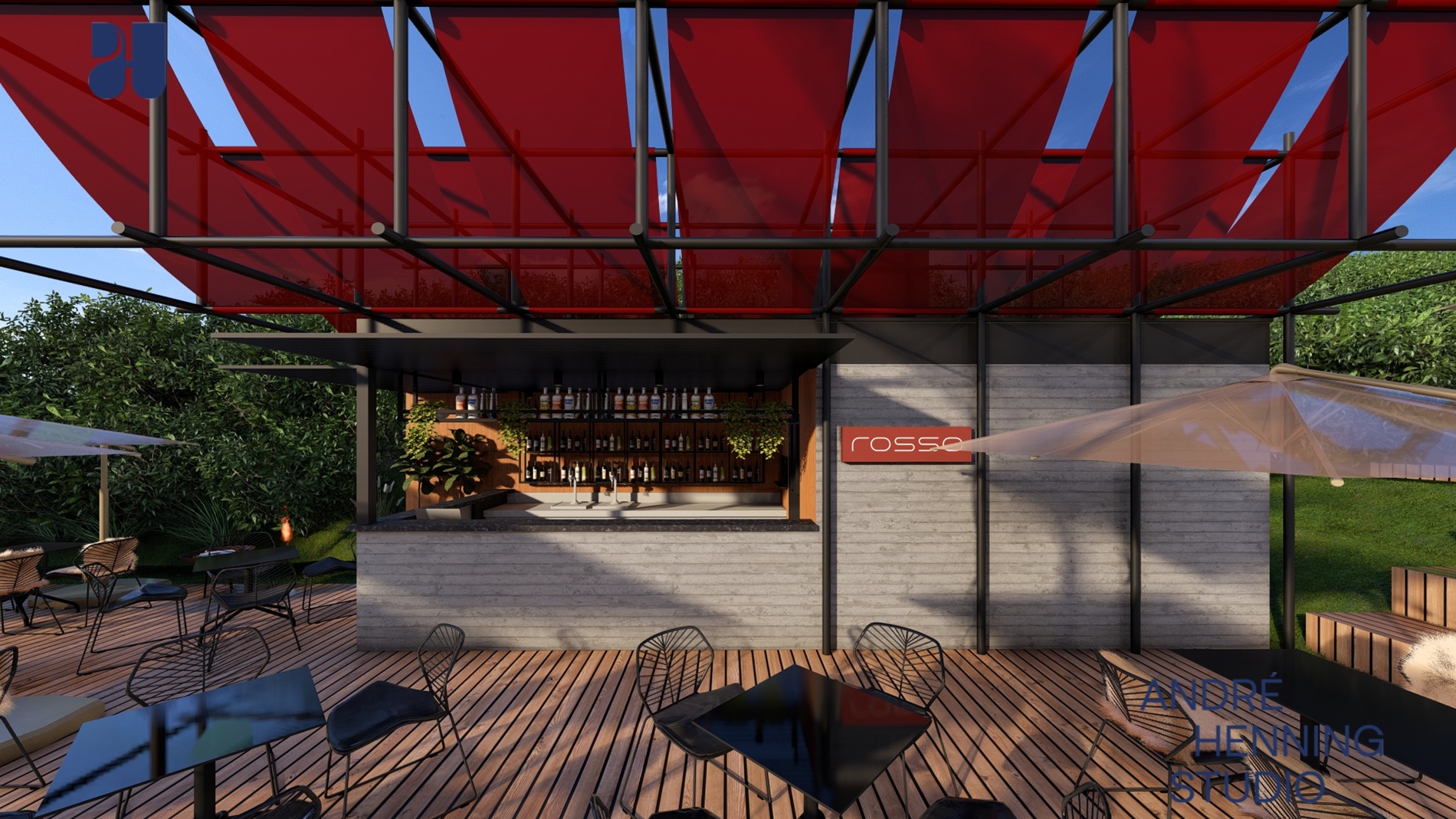 - Rosso (Espírito de Festival): O Rosso, bar inédito em Curitiba, é a personificação do espírito de festival. A estrutura metálica aparente confere um ar moderno e despojado, enquanto os tecidos esvoaçantes adicionam leveza e movimento. A grande sacada é o palco integrado, que permite a realização de apresentações musicais de diferentes estilos, tornando o espaço versátil e dinâmico, pronto para a energia dos shows.