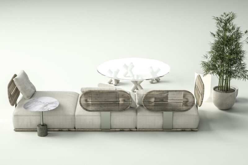 A Coleção Dolce Far Niente DIEEDRO por Jayme Bernardo para Modalle é composta por um sistema modular de sofás outdoor, que se encaixam perfeitamente também em projetos indoor. Com estilo minimalista, a Coleção tem estrutura em alumínio e encosto trançado em corda náutica chata de 6mm, assento tapeçado fixo e tapeçaria de encosto removível.