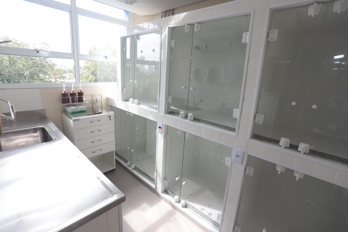 - Capacidade: Atendimento a cães e gatos, com canil, gatil, centro de adoções, consultórios, salas de cirurgia, raio-x, ultrassom e muito mais!