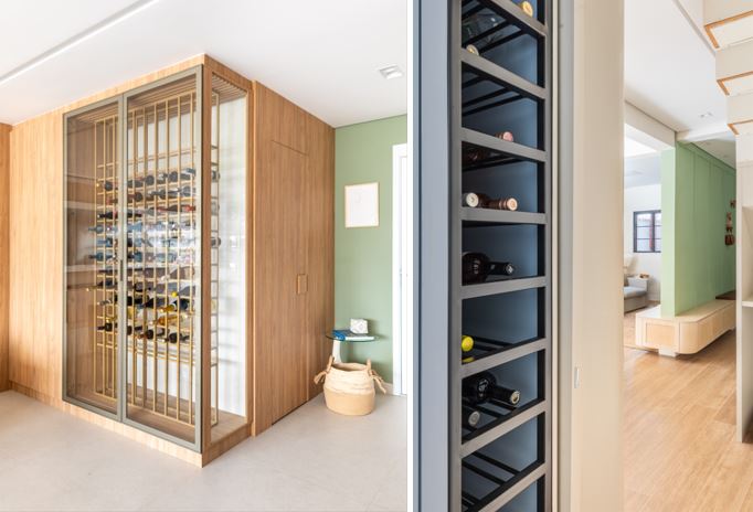 A serralheria tem se destacado na criação de adegas sob medida. Estruturas metálicas com vidro conferem transparência, leveza e um toque sofisticado ao armazenamento de vinhos e taças. As soluções podem ser embutidas, ocupar pequenas áreas inutilizadas ou assumir o papel de peça protagonista em ambientes sociais.