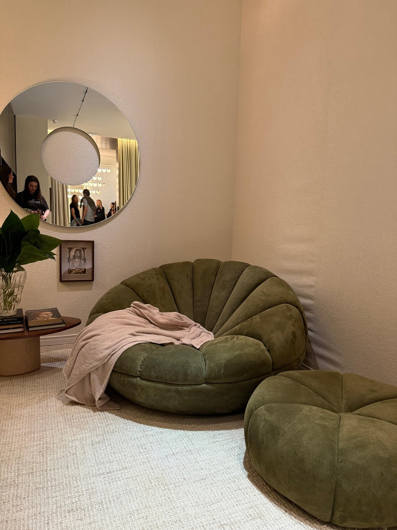Léo Shehtman assina o espaço Tempo Presente, uma ode à introspecção e à poesia da matéria. A poltrona Bergamota, da coleção Além da Superfície, é o ponto de encontro entre forma orgânica e precisão construtiva — uma peça que transforma qualquer canto em um refúgio.