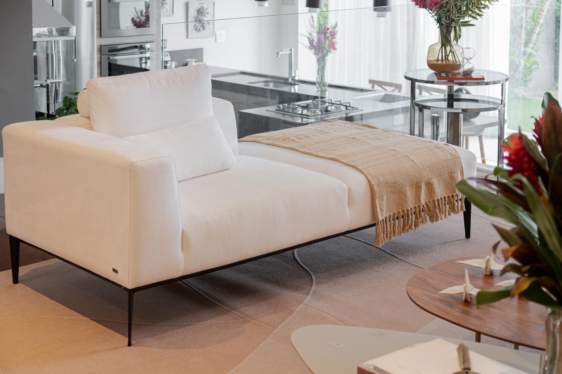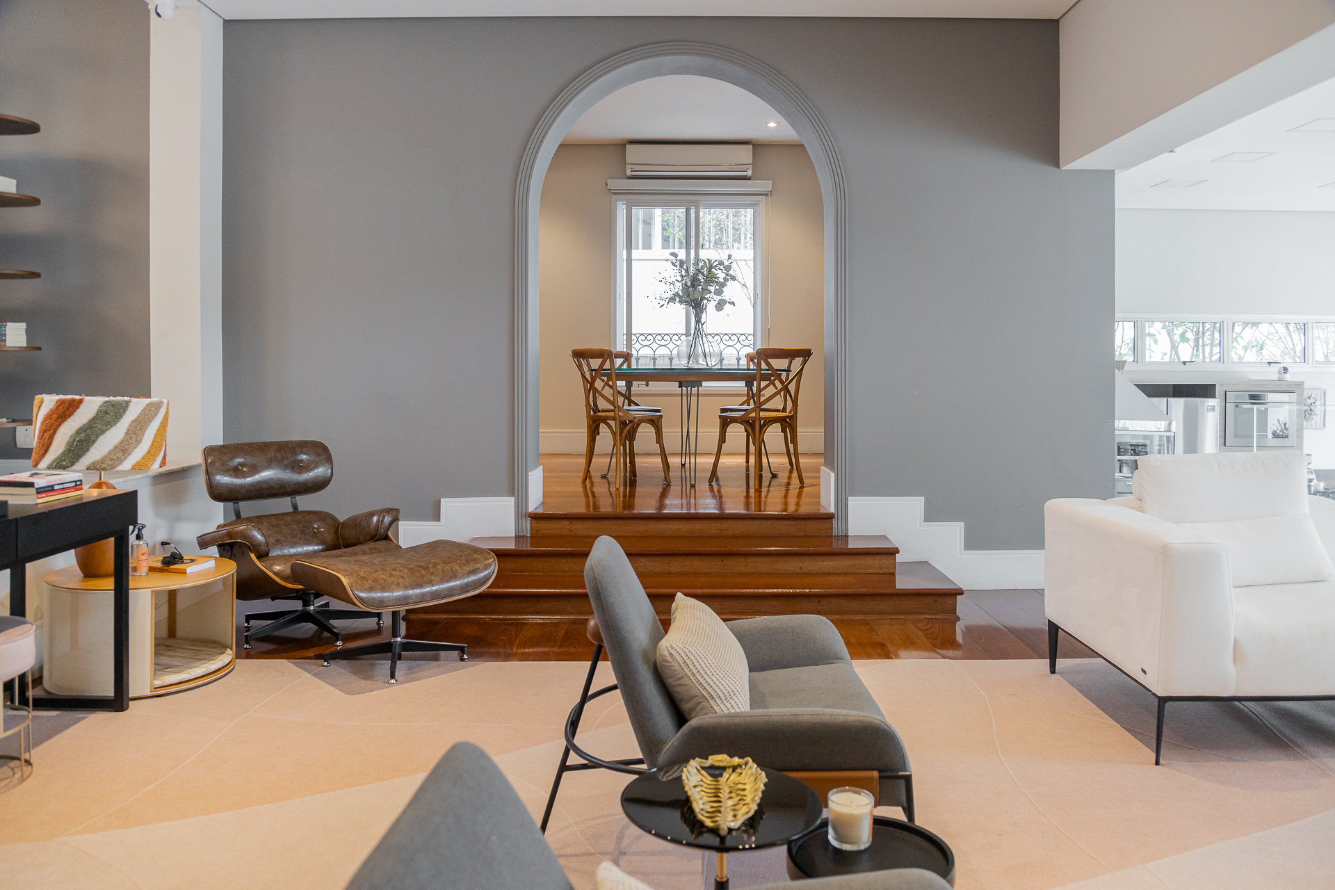 • Área social: Integrada e aconchegante, a área social é perfeita para receber amigos e familiares. A sala de estar conta com um sofá em formato de “U”, ideal para conversas e momentos de lazer. A sala de jantar, com mesa de mármore e cadeiras estofadas, é ideal para refeições elegantes.
