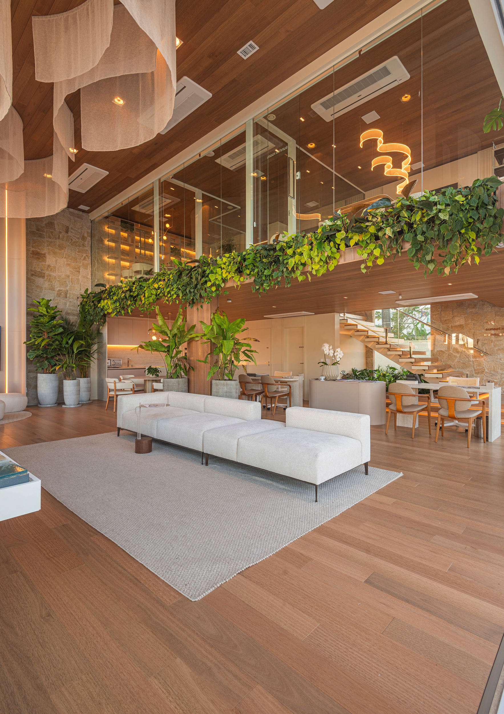 - Biofilia: A presença de plantas e elementos naturais conecta o espaço ao exterior.