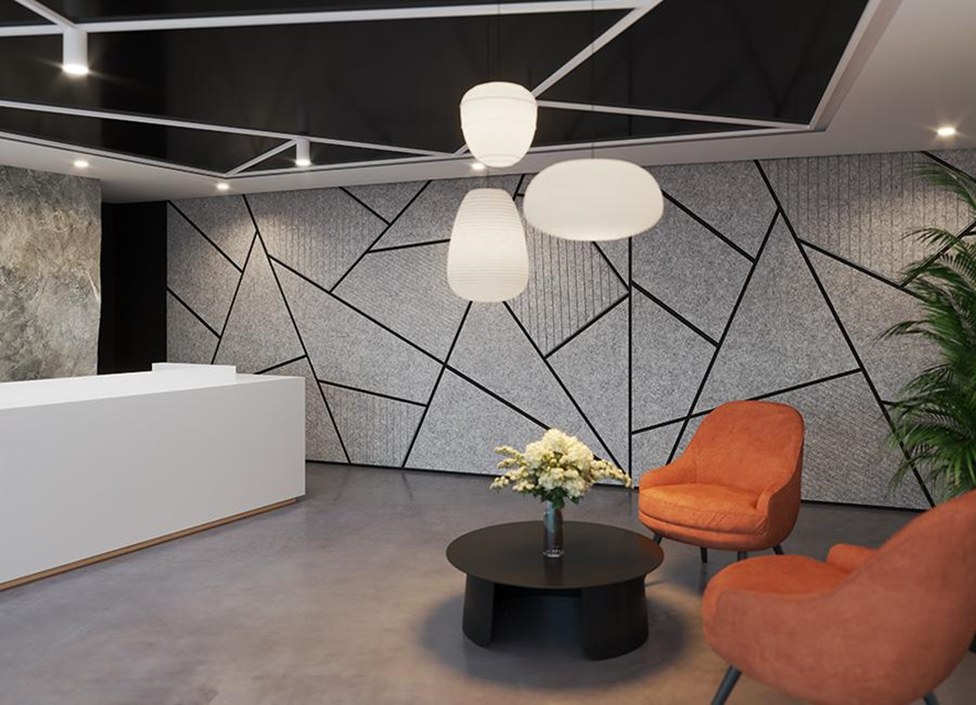 - Design: Com uma ampla variedade de cores, texturas e formatos, os painéis KUAIET vão além da função acústica, transformando os ambientes em verdadeiras obras de arte.