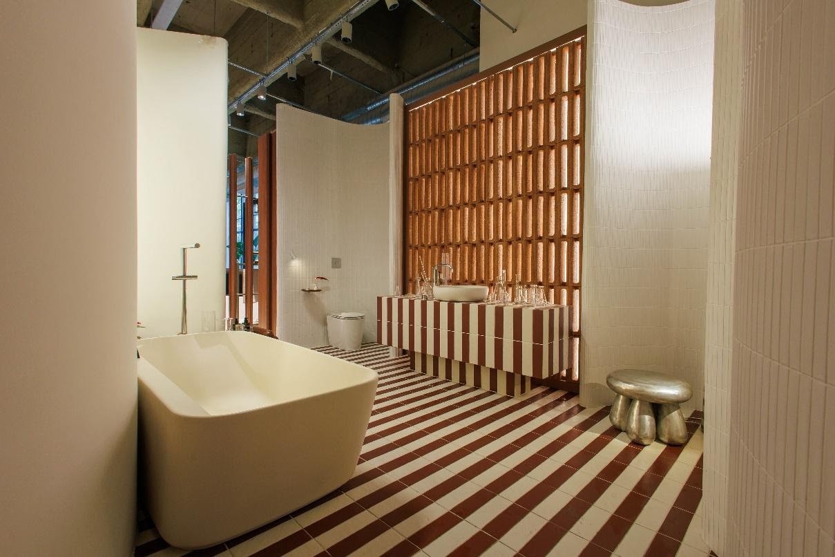 Ambiente assinado pelo Studio Casa Design para a mostra Viver Ambientes, na Casa Dexco, com paleta de cores que induzem à vivência do momento presente